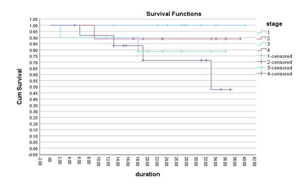 Stage-wise Survival rates for stages I, II, III, and IV were 100%, 89%, 79% and