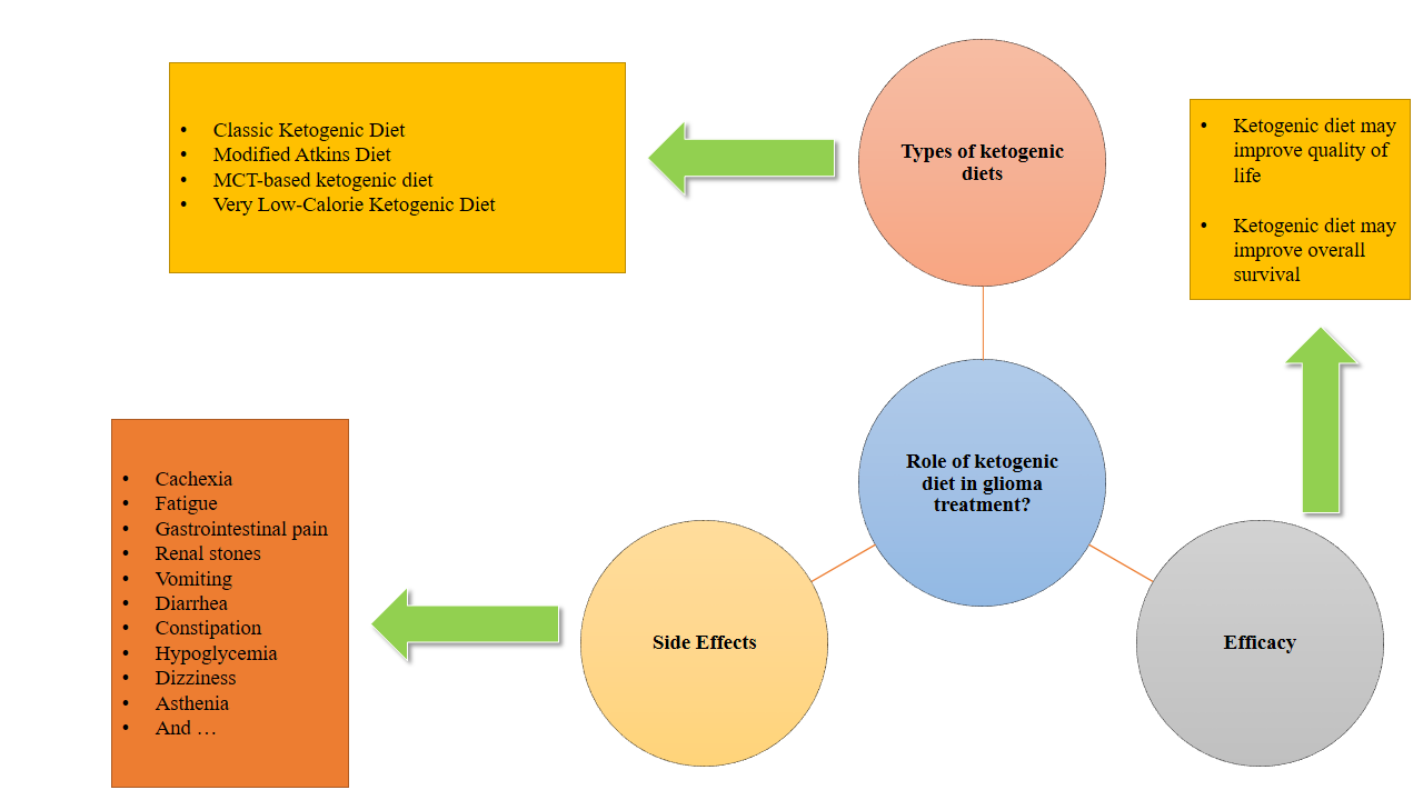 Gliomas are the most prevalent primary tumors of the brain and spinal cord. Regrettably, the prognosis, especially for high-grade gliomas, remains quite bleak. In recent decades, there's been a growing trend to replace or combine radiotherapy with chemotherapy, targeted therapy, and personalized treatment for different patients. For example, carboplatin and vincristine are considered standard treatments for some patients with unresectable pediatric low-grade gliomas. In recent years, ketogenic diet (KD) has emerged as a promising investigational therapy for CNS tumors, with researchers exploring its use in conjunction with existing treatment modalities. This review article delves into the mechanisms underlying KD's potential therapeutic effects on glioma and its efficacy, safety profile, and overall role in glioma treatment.