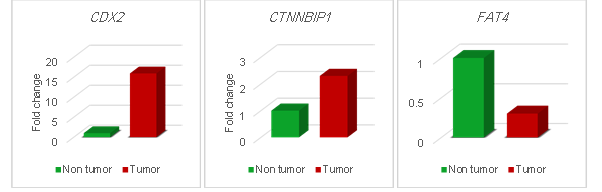 CTNNBIP1, and FAT4 genes in tumoral and non-tumoral tissues.