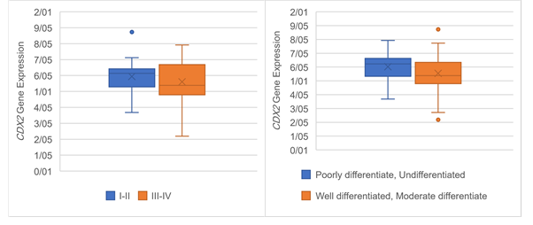between CDX2 and CRC or the decrease in the degree of CDX2 gene