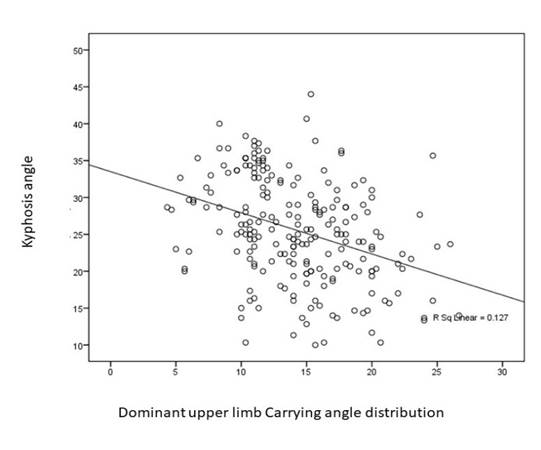 correlation between kyphosis and carrying angle with demographic factors in