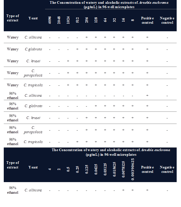The MIC and MFC of Arnebia euchroma watery extract for Candida