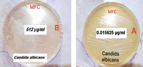 were 0.015625 µg/mL and for Candida glabrata were 256 µg/mL, also the