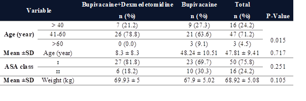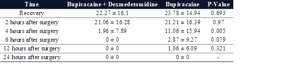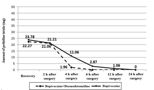 100µg dexmedetomidine. The amount of pethidine consumption, postoperative VAS