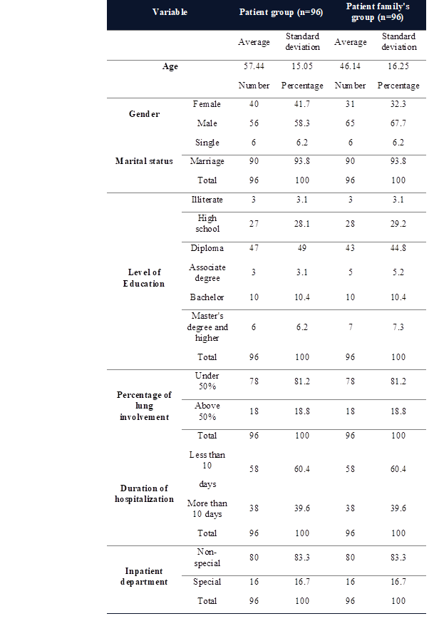 descriptive cross-sectional study, 96 patients and 96 family members in