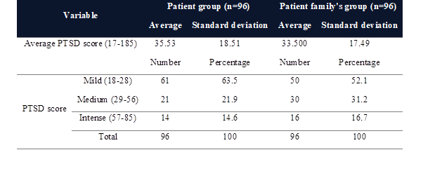 married people (90%), and people with a diploma (49%). The mean score of PTSD in the patient group and the patient family group was