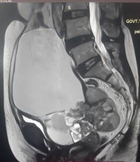 Figire 1. MRI pelvis showed an abdominopelvic cystic