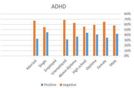 Adult ADHD and age, education, employment status and marital status (P ≥ 0.05),