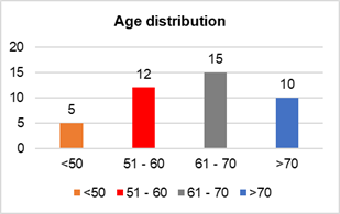 insights. Notably, the age span (45-82 years) centers around 61-70 years, with