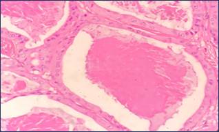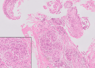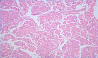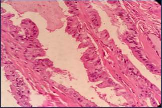 H& E stain,20x Papillary glandular neoplasm, the atypical cells are