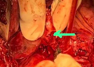 Figure 4. Intraoperative image shows grey-white tumour in the bronchus.