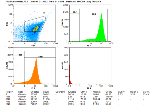 be fluorescent that can be detected by flow cytometry. The behavior of