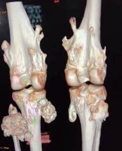 3D image of the patient showing multiple pedunculated mass over the tibia and