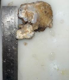 which showed a single bony tissue with a cartilaginous cap totally measuring 6
