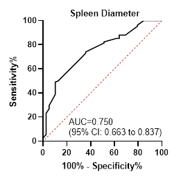measure spleen diameter (SD) and calculate the PC/SD ratio. ROC analysis was