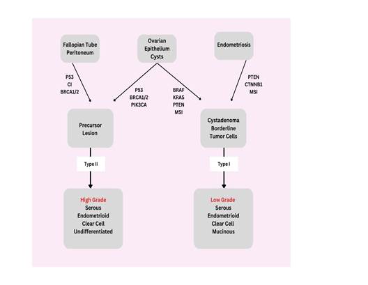 ovarian tumors are derived from epithelial cells. Around 5% to 6% of tumors are