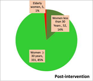 smear examination for cervical cancer post-intervention compared to only 18.04%