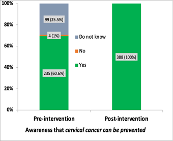 cervical cancer significantly increased from 81.5% to 88.8%, after intervention
