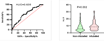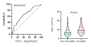 and requiring mechanical ventilation (yes or no). Area under the receiver