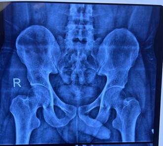 ruled out any pelvic fracture as depicted in Figure 1. The patient's blood