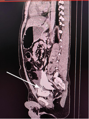 catheterization. X-ray of the pelvis was normal. Contrast-enhanced computerized