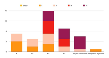 Results: Most patients had thymoma with B2 and B3 histology. 1/3rd of