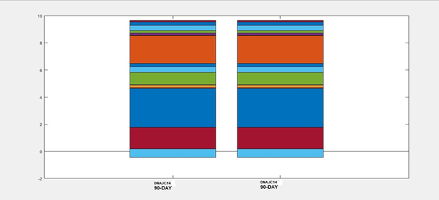 histograms on day zero and day 90 showed increased DNAJC14 gene expression.