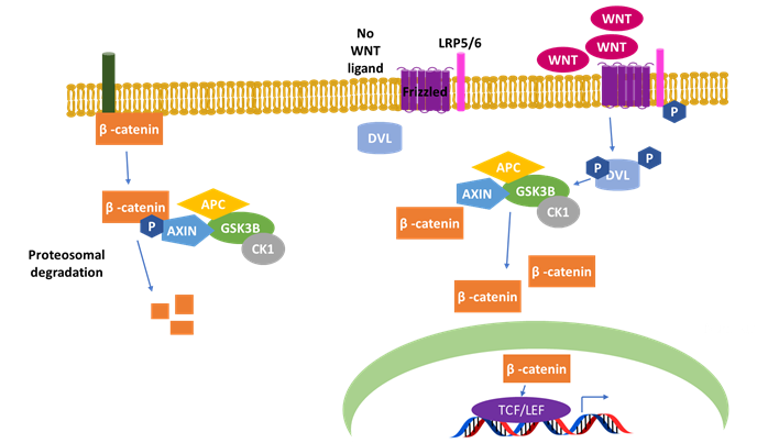 the cell membrane. GSK3 B and CSNK1A1 can then phosphorylate LRP co-receptors,